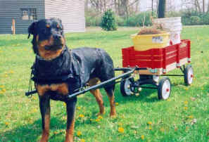 Ebenehaus Living It Up, CGC "Brandy" was born 3-25-95. We had fun in the show ring until her accident. When her show career was cut short, we started working in obedience. That led to carting and backpacking. She is friendly to everyone and all animals. Brandy is number one in the pecking order! And, she keeps all the other dogs in line.