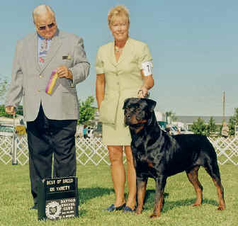 Nash was out of Katie's first litter of seven (3-22-2002).  At 5 months of age, Nash took a puppy group 1 in Canada.  Nash consistently won or placed in his class at AKC shows until he finished his championship at two years old.  Owner handled for all his shows, Nash is a multi Best of Breed winner and a Best In Specialty Show winner.  Nash finished his Canadian Championship in just three weekends.   People love his temperament!  And Nash loves attention from everyone.